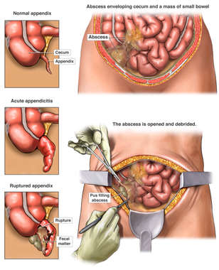 - A ruptured appendix: A rupture spreads infection throughout your abdomen (peritonitis). It is a potentially life-threatening condition which requires immediate surgery to remove the appendix and clean the abdominal cavity.